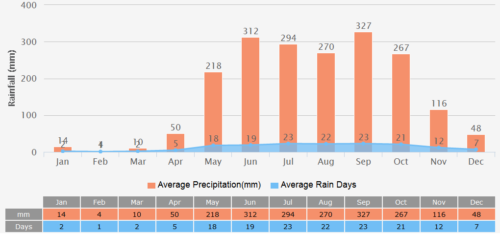 Rainfall in Ho Chi Minh City is concentrated between May and October. Influenced by the southwest monsoon, this period sees abundant maritime moisture and frequent strong convection, resulting in a rainy season characterized by frequent downpours, which is short but intense: the monthly average rainfall mostly surpasses 210 mm, with over 18 rainy days. The weather is highly dramatic - clear skies in one moment, dark clouds rolling in another, and sudden downpours that quickly leave streets calf-deep in water, followed shortly by the sun shining again. Sneakers are prone to getting soaked, so it’s advisable to bring sandals.Correspondingly, the dry season runs from November to April. Precipitation during this period is minimal, with fewer than 30 rainy days recorded over a six-month span and an average monthly rainfall mostly below 40 mm. The weather is stable with few fluctuations.
