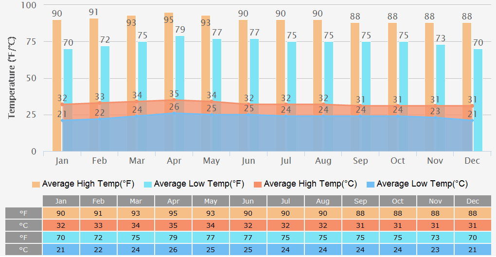 Ho Chi Minh City enjoys a year-round hot weather. The high temperatures mostly range from 30 to 37℃ (86 - 99℉), while the low temperatures are between 22 and 28℃ (72 - 82℉). Thanks to the regulating effect of the ocean, extreme high temperatures above 40℃ (104℉) are rare. However, the abundant moisture brought by maritime keeps the air humid, making the apparent temperature much higher than the actual one and leading to sticky feelings. Often within ten minutes after staying outside at noon, your clothes will be soaked with sweat.In comparison, December to February is relatively cooler in Ho Chi Minh City: highs typically range from 28 - 34℃ (82 - 93℉), lows from 20 - 26℃ (68 - 79℉). While still hot, it is not unbearable like in other months, barely making you reluctant to go out. Muggy conditions ease noticeably in the mornings, evenings, or after rain, so you can stroll the old streets for a pleasant taste of local charm with a cup of iced coffee in hand.