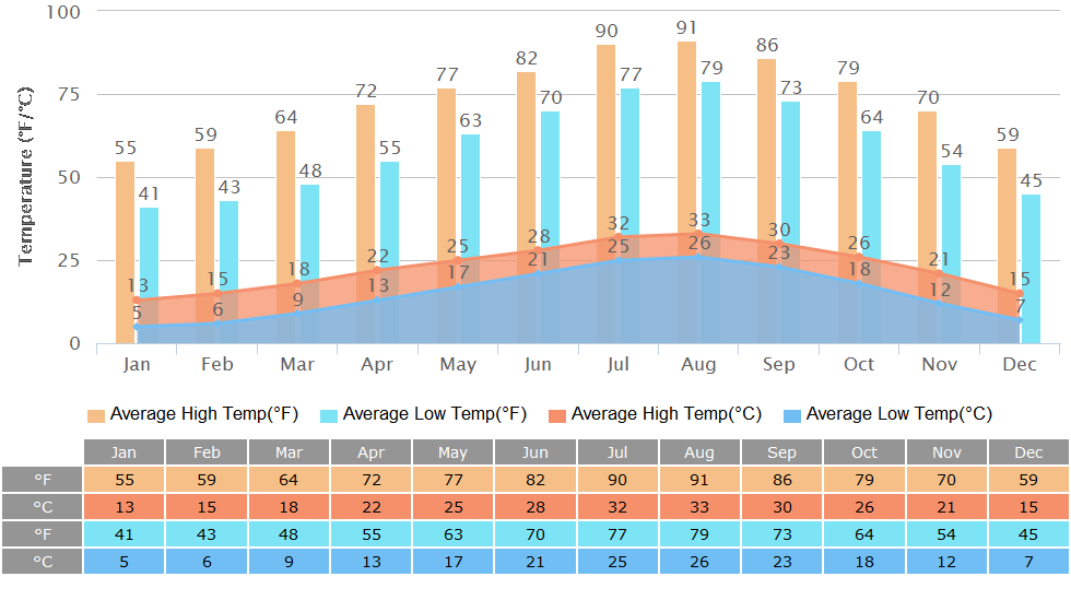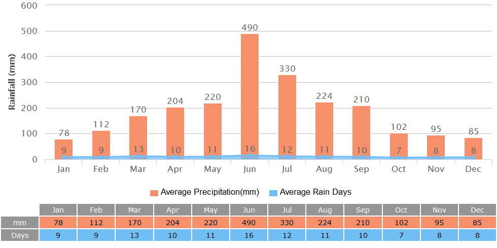What you need to pay attention to is that the precipitation is getting higher than previous months, and heavy rainfall is possible, so remember to pack rain gear when you hang out. Besides, the UV ray is getting stronger from April on till October, with the average UV index of no less than 7. Accordingly, you need to apply sunscreen and wear a sunhat particularly when it’s sunny.