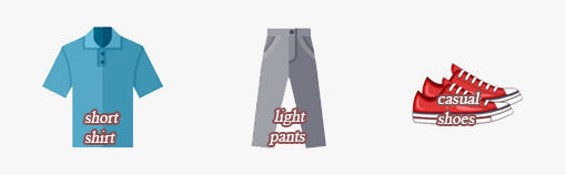 In this month, it’s recommended to wear short shirt, T-shirt, dress, shorts, and thin jeans, and prepare long-sleeve T-shirt, jacket and suit at night to keep warm. Depending on its hot and sunny days, sunglass, sunhat and sunscreen are necessary.