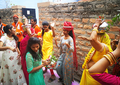 There is a noticeable cultural diversity in Jaipur. There colorful turbans worn as a part of their cultural outfit is different in various communities. While Raikas and Kabirs wear bright, red turbans, The Bishnois, Jats, and Ram Snehis wear white turbans. Rajputs are known for their five-colored turbans. With contemporary instruments like Sarangi, Jhalar, and Ektara, people dance to their folk songs. Ghoomar, traditional folk dance of Rajasthan can be seen on occasions like festivals, marriages and more. The traditional outfit of the people of Jaipur is Ghagra Choli with antique borders and designs.
