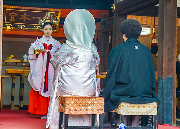 The shrine allows couples to hold weddings in Wedding Hall, and you have the opportunity to view the Japanese wedding rituals. The bride will wear a pure white robe and the groom will wear a black blouse and samurai dress.