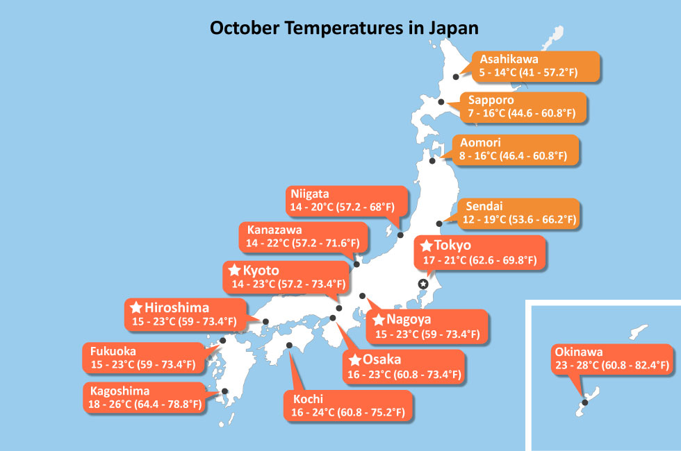October Weather of Major Japan Cities