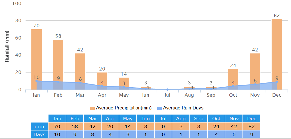 Hottest Month: December: 16.6-26.4°C (61.88-79.52°F)