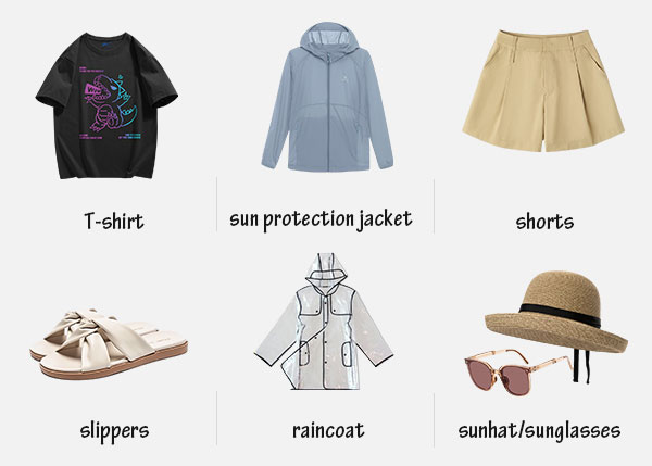 Shoes: If you are going to hang out a little in town or have fun on the beach, wear non-slip sandals or slippers, which are OK on wet roads or by the sea. When you go hiking, you’d better wear non-slip and water-proof hiking shoes or sneakers plus water-proof shoe covers, because the road conditions may be muddy in wet December.