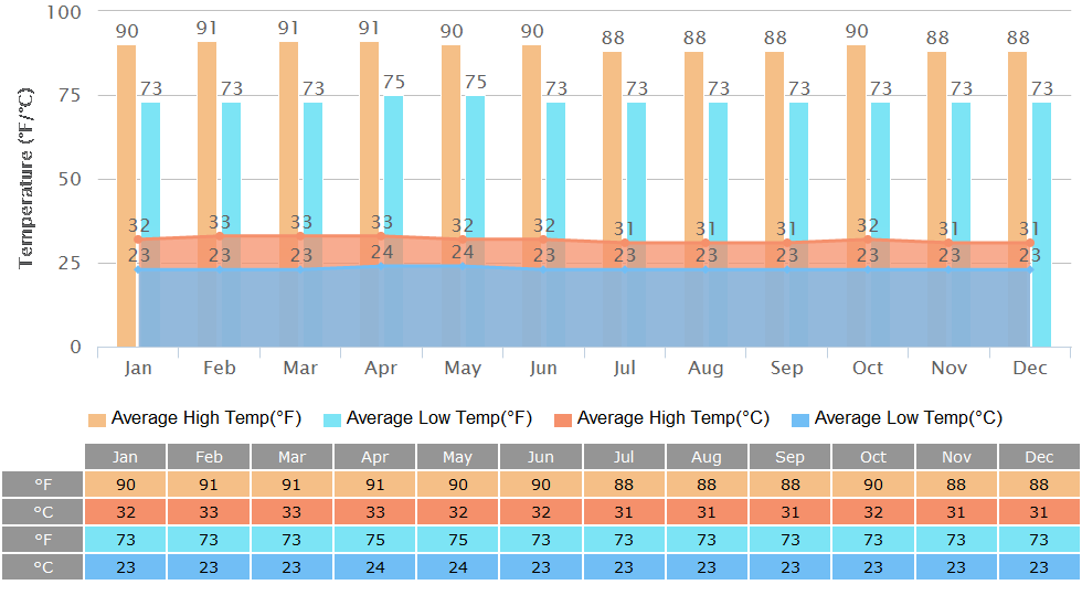 Compared with other regions in Malaysia, Malacca receives moderate rainfall throughout the year, with the average monthly rainfall rarely exceeding 250 mm.Its wettest month is November, with an average rainfall of 239 mm, and 17 rainy days. However, there’s no need to worry as the rain tends to be brief, rarely lasting for all day even in rainy season.