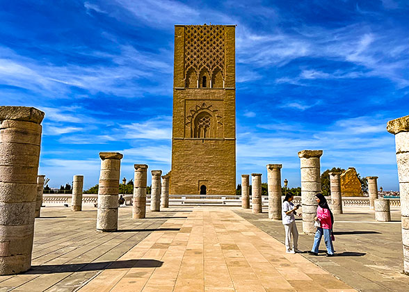 After breakfast at hotel, our driver guide will pick you up at the hotel lobby for departure to Rabat, the imperial capital of this country. Upon arrival in one hour, you will be guided to visit the Royal Palace from outside. This is a typical Arabic architecture and mainly served as a political conference center, where the king of Morocco greets the heads of other countries. After that, proceed to the Hassan Tower, which was not completed since 1196. At present, there are only stone pillars remaining due to frequent earthquakes and the lack of funds. Later, continue to visit the Mausoleum of Mohamed V, where royal soldiers stand at the entrance. The last stop today is the Oudayas Kasbah, a complex of castles. It is characterized by its picturesque garden, museums with jewelry, musical instruments, and ethnological costume inside, and high platforms particularly for overlooking the seascape. Finally, spend some leisure time exploring souks in old medina. Hassan Tower