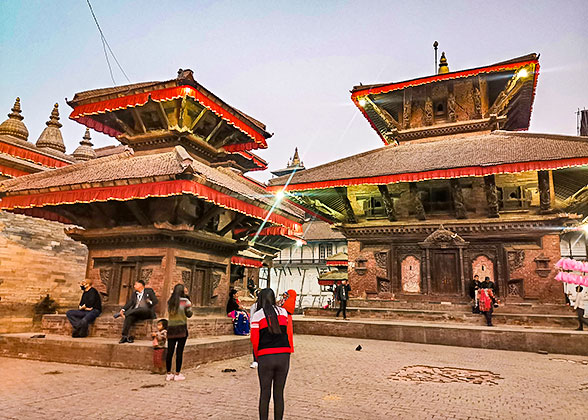 Sightseeing Activities: Today, we will drive to Bhaktapur City in the east corner of the Kathmandu Valley. Upon arrival, our guide will lead you to visit the old palaces and temples at the Durbar Square and the distinctive Dattatreya Temple. Later, we will head to the Patan Durbar Square which is an open air museum of archaic buildings, and then spend some time in the glorious Golden Temple. Finally, the guide and the driver will escort you back to Kathmandu. ★ What make us different: In the evening, we will arrange an excellent dance show with Nepali dinner for you at a local specialty theater restaurant. Meals: Breakfast, Lunch, Dinner Golden Temple in Patan