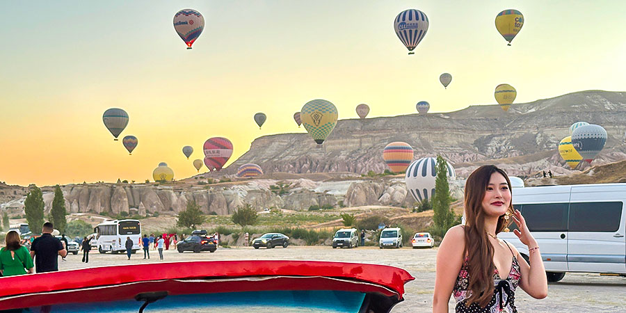 Women: The summer attire firstly must be thin and breathable, and secondly goes well with the destinations. During city sightseeing, an elegant dress is ideal for capturing perfect photos with buildings. Opting for a longer style is more recommended when visiting mosques. If you plan to explore the landscapes of Cappadocia, a thick coat is essential to handle the morning chill. Also, a pair of cozy sneakers is necessary when you travel here. At the beach, a bright swimsuit with a stylish wide-brim sun hat can make you stand out, and don’t forget to bring a shawl or beach towel for cool nights by the seaside. Further, sunproof clothing and sunscreen can help you maintain fair skin and not get sunburned.