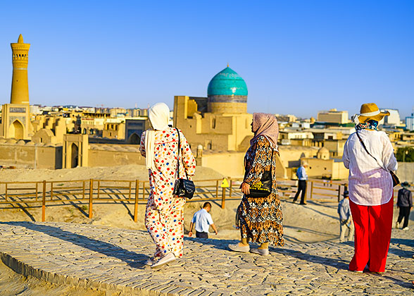 Amir Temur Mausoleum After breakfast, you’ll be escorted to the railway station for a 2-hour high-speed train to Bukhara, which is believed to be the cradle of the book - Tales from the Thousand and One Nights (also known as The Arabian Nights). Compared to the sumptuous Samarkand, Bukhara shows simplicity in amber-colored sandstone without too much adornment. Upon arrival, you’ll be escorted to the handpicked hotel for check-in. After a short break, our walking tour will start from the 45-meter-high (147-foot) Kalyan Minaret, one of the highest buildings in Bukhara. It is said that the foundation of the minaret was built with bricks made of alabaster mixed with camel milk. To prove its solidity, its architect, Bako, made a will to be buried 45 meters (147 feet) away from the base after he passed away and declared that if the minaret fell, it would fall on his head. Adjacent to the minaret, Kalyan Mosque and Miri-Arab Madrasah face each other, whose iwans, the portals of Islamic buildings, gleam with geometric and botanical patterns in blue-and-white tilework. If interested, come back here again at dusk to capture the silhouette of the minaret and mosque when the buildings are bathed in the soft, golden hues of the setting sun. Then, continue to Bukhara’s oldest mosque, Magoki-Attori Mosque. Passing the Islamic institutions, Ulugh Beg Madrassah and Abdulaziz Khan Madrassah, we will step into the Trade Domes Market, where you can see various Uzbek traditional artworks such as miniatures, embroideries, wooden sculptures, and traditional clothes. Crossing the Lyabi Hauz Ensemble filled with various stylistic restaurants, coffee shops, galleries, and souvenir shops, we’ll stop at today’s last destination - Chor-Minor Madrasah. Once featured on Lonely Planet Central Asia’s cover, it houses four uniquely designed blue towers. Some say that each one represents a dynasty: Karakhanid (840-1212), Samanid (875-999), Shaybanid (1500-1599), and Manghit (1785-1920), while others think of the towers as a symbol of the four religions: Zoroastrianism, Buddhism, Judaism, and Islam, and the central dome signifies the shared universe. You may find Buddhist prayer wheels and Christian crosses on their blue tops. Standing at the right side of the madrasah and snapping a photo with a wide-angle lens, you could recreate the cover of the Lonely Planet. Meals: Breakfast Accommodation: Volida Hotel Bukhara (3 stars) or similar Kalyan Minaret, Bukhara