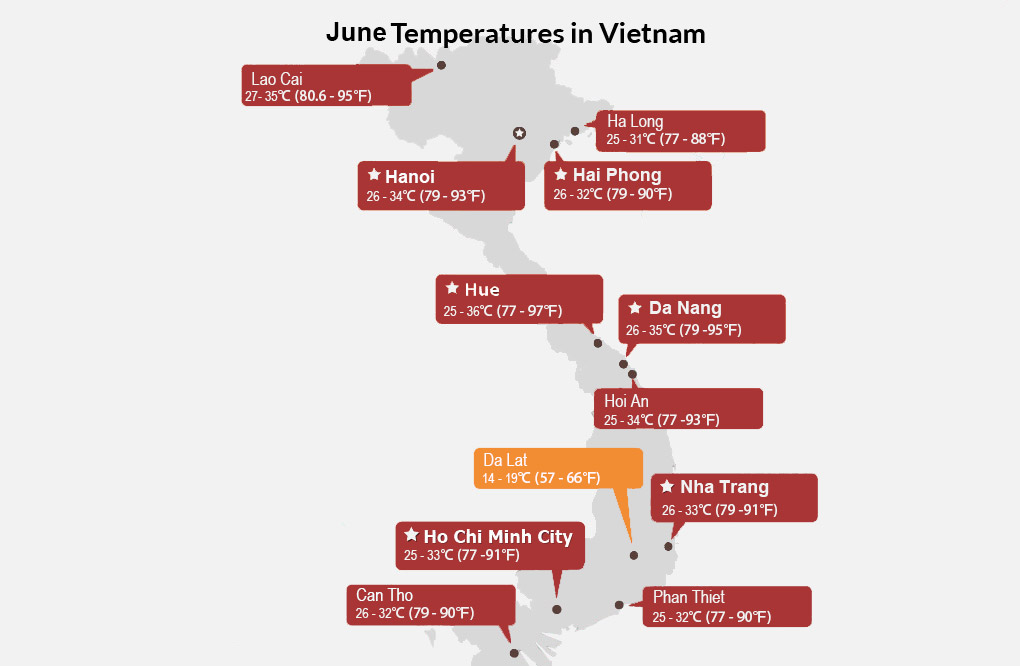 In June, most parts of Vietnam are quite hot.For example, in Hanoi, a famous travel destination in the north, daytime highs typically range from 32 to 36 degrees Celsius (90 to 97 degrees Fahrenheit), with extreme cases reaching up to 42℃ (108℉). Under such conditions, asphalt roads may appear nearly molten, and despite the use of umbrellas for shade, radiant heat wraps around the body like a damp towel, resulting in profuse sweating even after short periods of walking outside. Even at night, the lows are between 26 and 30℃ (79 to 86℉), which means that if you want to sleep comfortably, you must have a fan or air conditioner.